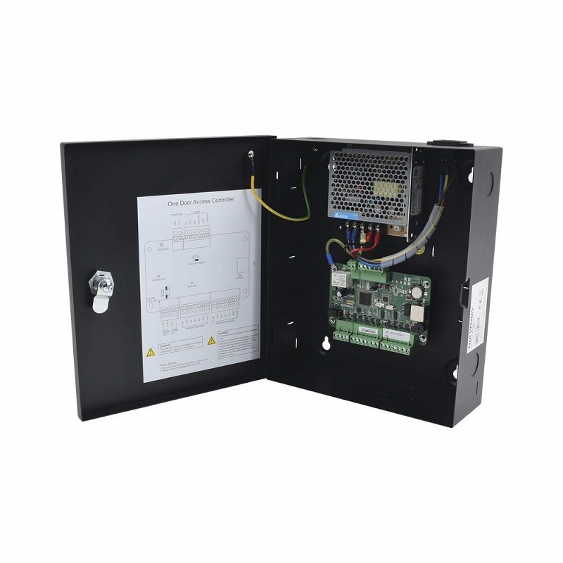 Контроллер доступа на одну дверь, хранилище на 10 000 карт и 50 000 событий контроля доступа. Связь по восходящей линии связи: TCP/IP; Доступное устройство считывания карт: 2 считывателя Wiegand.