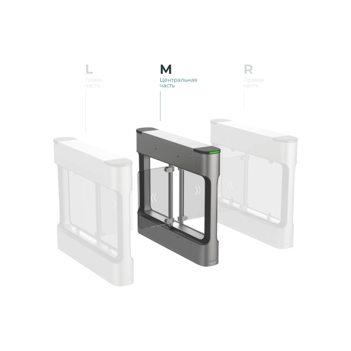 Центральный элемент турникета Створка в комплекте (30 см) Встроен контроллер и 2 считывателя карт Mifare Встроенно 2 отверстия для установки кронштейна Встроен K7R01-433 серии передатчик для подключения беспроводного пульта Терминал НЕ входит в комплект (приобретается отдельно)