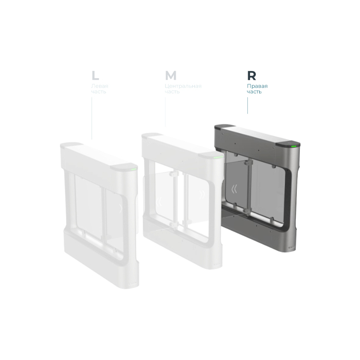 Правый элемент турникета Створка в комплекте (30 см) Встроен 1 считыватель карт Emmarine Встроенно отверстие для установки кронштейна Терминал НЕ входит в комплект (приобретается отдельно)