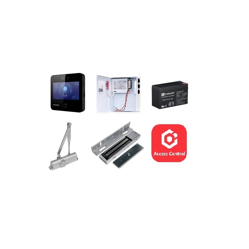 iKey 010 — готовое решение «под дверь» для бесконтактного доступа по лицу и карте Mifare (M1). В комплекте: 2 терминала распознавания лица (до 300 лиц / 300 карт, журнал 150 000 событий), комплект видеодомофона 4,3″ с вызывной панелью (800 ТВЛ, угол 72°), ЭМ-замок 280 кг с уголком, доводчик до 120 кг, резервируемый ИБП 13.8 В / 3.8 А с АКБ 7 Ач, а также бесплатное ПО HikCentral Access Control для настройки и администрирования.